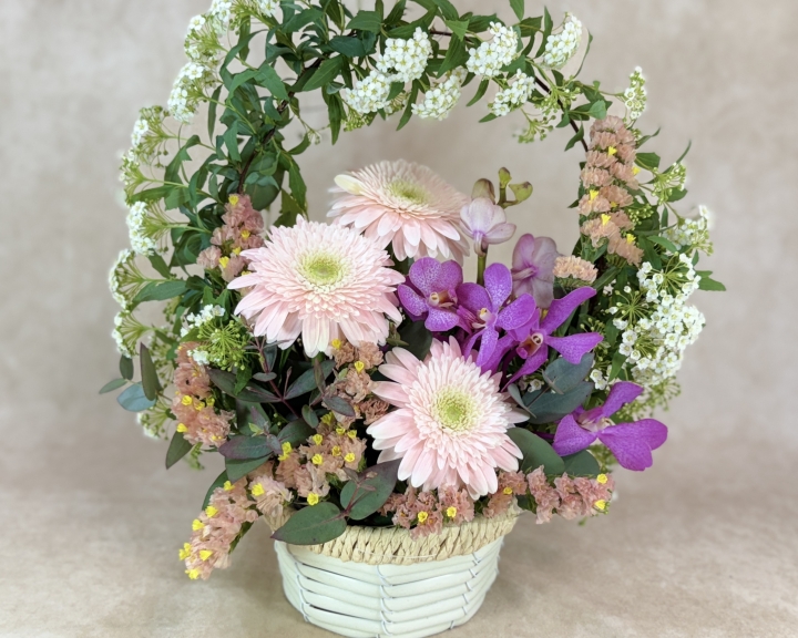 その時期の「旬の花」を使い、飾りやすいサイズの作品を作ります。